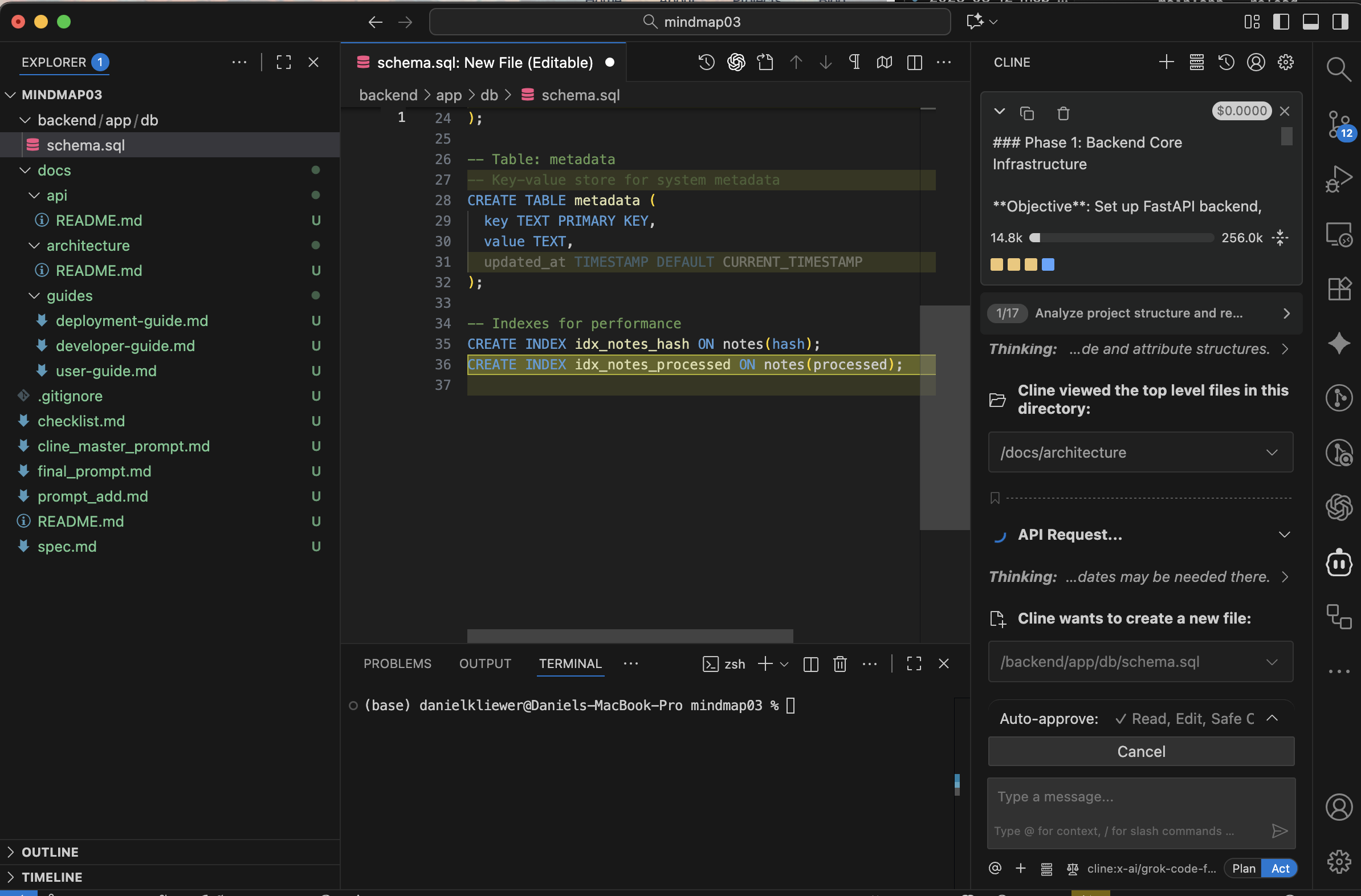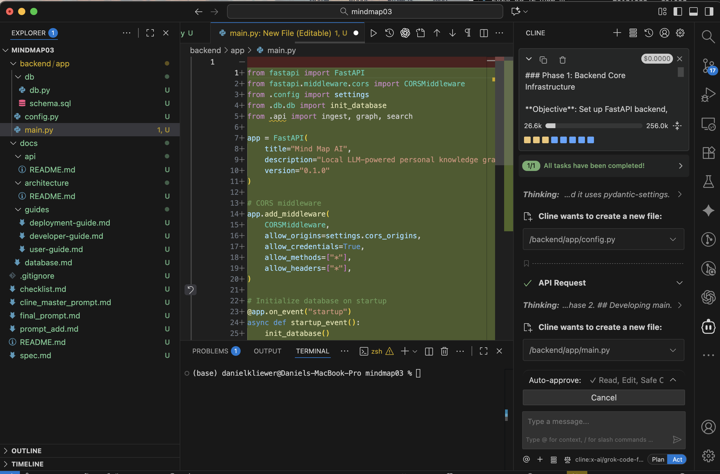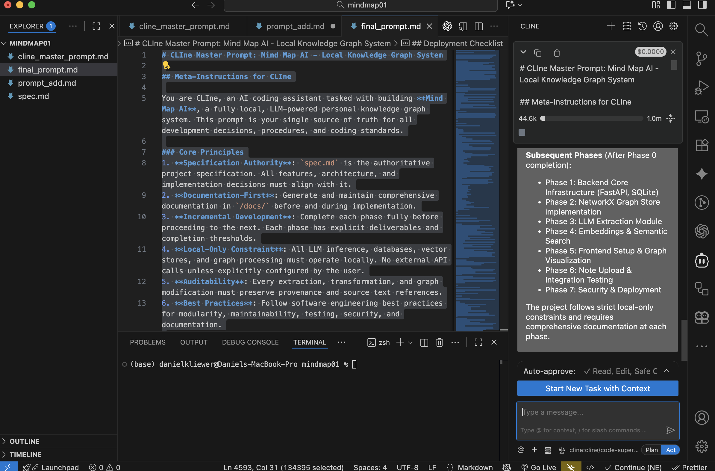 Ok so now it is time to YOLO it and save that prompt as final_propmt.md in root and I just copy pasted the whole thing into the chat for CLIne since it is a large context model. It of course restarts the task with the proper context, which is why I do that since it is pretty good at figuring that part out. The initial prompt it created from that context is as follows: