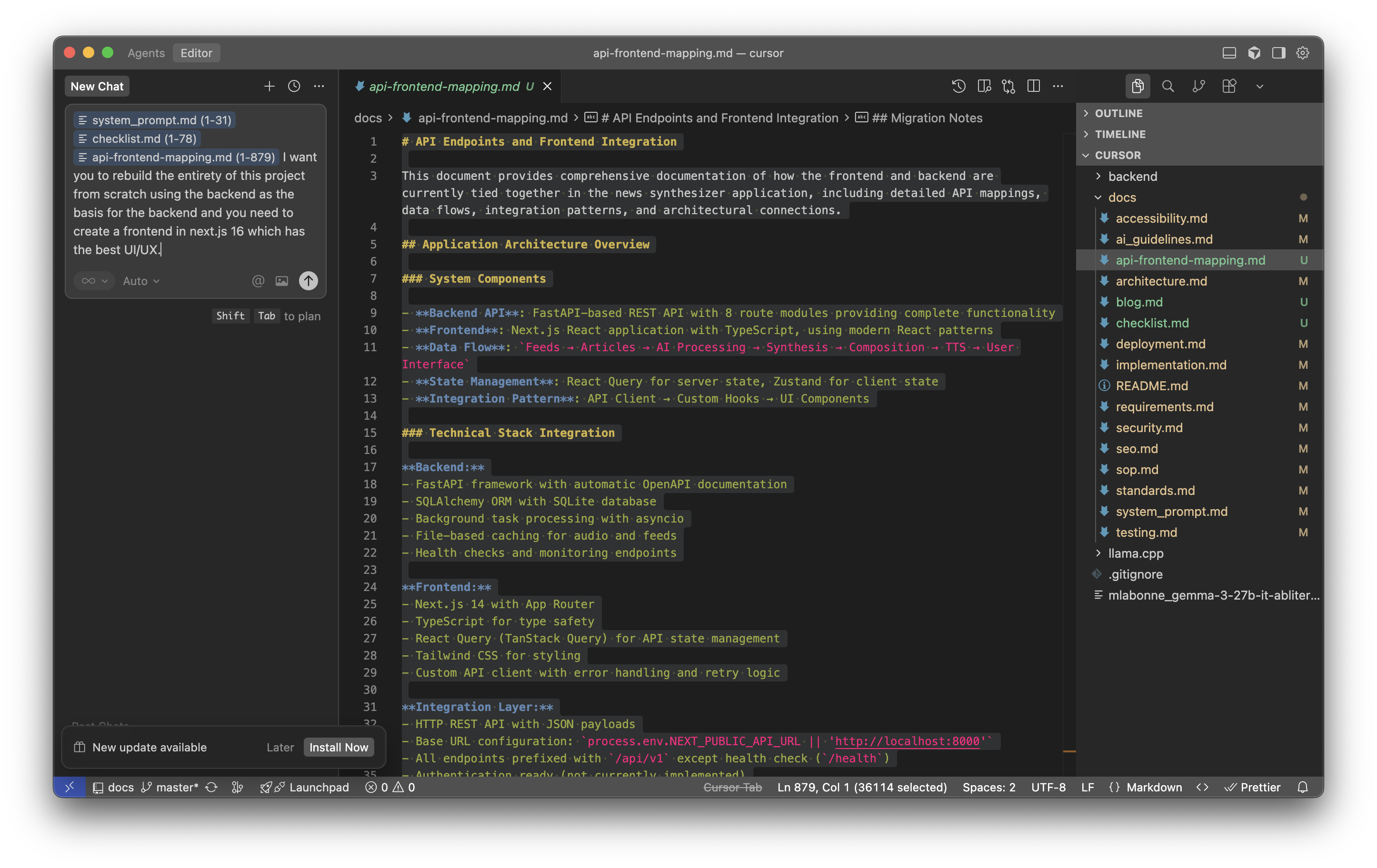 One of the coolest things Cursor did? It created its own context document to anchor its understanding of the project: